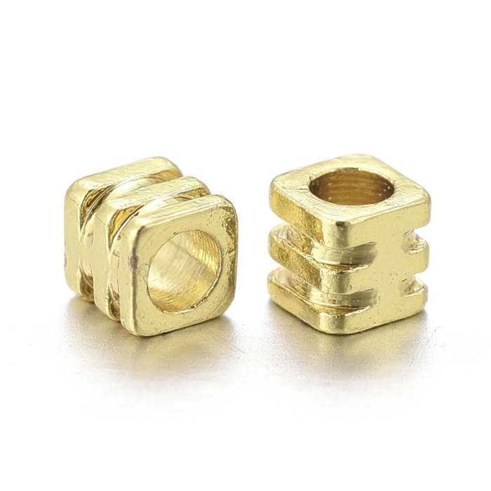 Бусины-Разделители из Латуни, Рифленые Кубики, Стойкое Покрытие