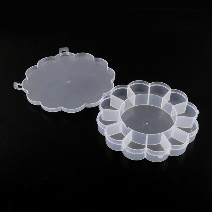 Контейнер для Бисера и Бусин, Пластик, Прозрачный, Цветок, 13 Отсеков,