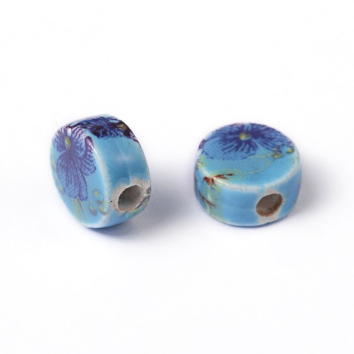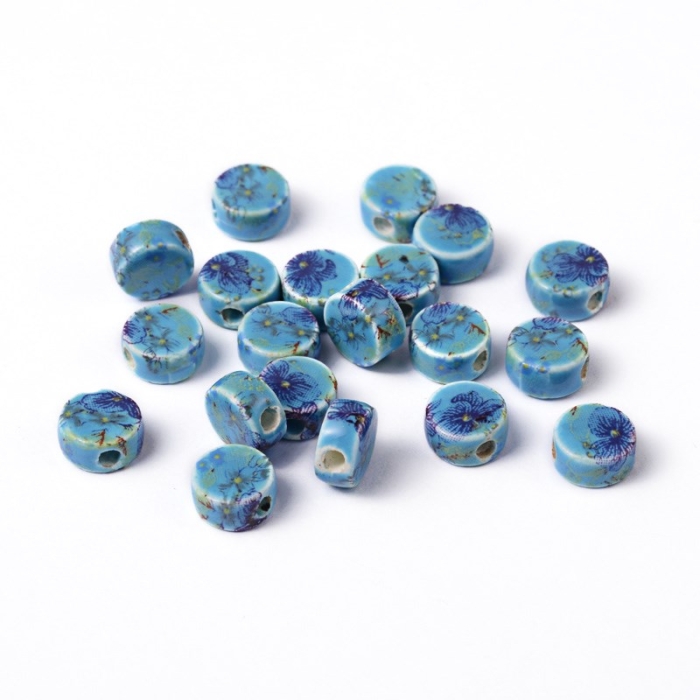 Бусины из Фарфора Ручной Работы с Принтом, Круглые Плоские, Цвет: Синий, Размер: 9х5мм, Отверстие 2мм, (УТ100027214) - ᐈ заказывайте в Москве оптом и в розницу ✅Скидки ✅Акции ✅Распродажи ᐈ доставка по всей России ᐈ Интернет-магазин Мир Бусин