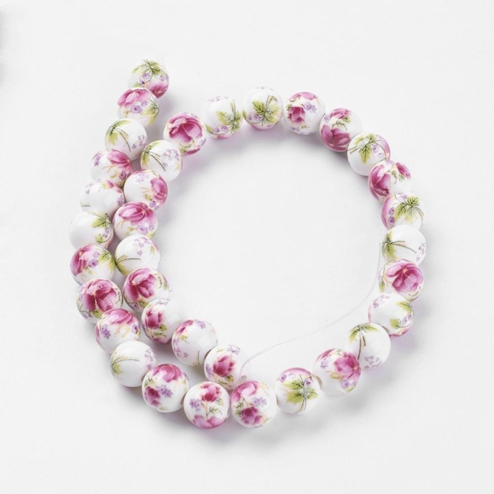Бусины из Фарфора Ручной Работы с Цветочным Принтом, Круглые