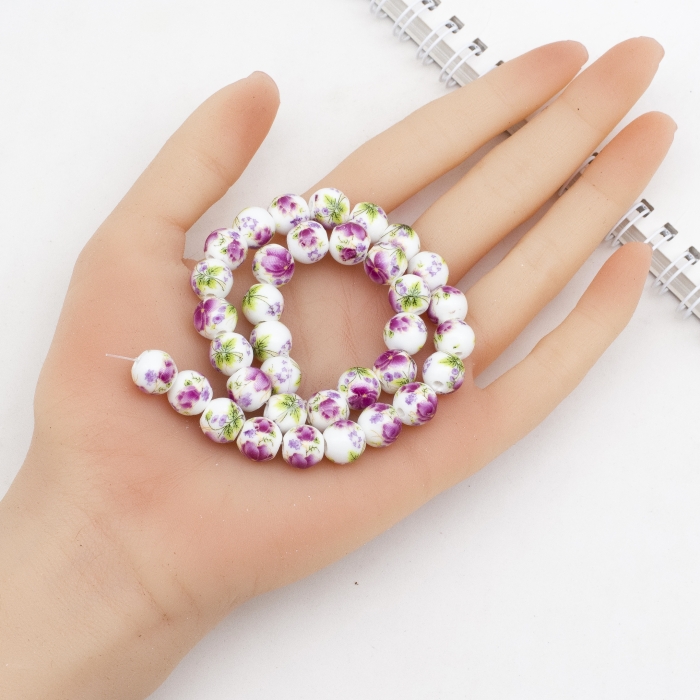 Бусины из Фарфора Ручной Работы с Цветочным Принтом, Круглые, 10мм, Отверстие 2мм, около 33шт/32см/нить, (УТ100027217) - ᐈ заказывайте в Москве оптом и в розницу ✅Скидки ✅Акции ✅Распродажи ᐈ доставка по всей России ᐈ Интернет-магазин Мир Бусин