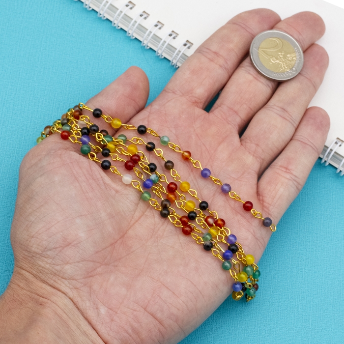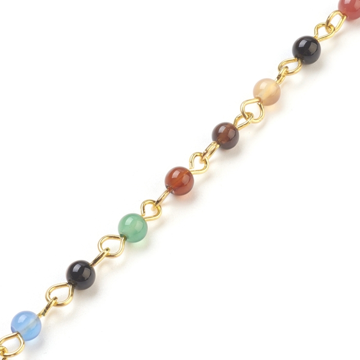 Цепь Латунная с Бусинами Натуральный Агат 4-4.5мм, Ручная Работа, Разъемная, Золото, 1м/нить, (УТ100028398) - ᐈ заказывайте в Москве оптом и в розницу ✅Скидки ✅Акции ✅Распродажи ᐈ доставка по всей России ᐈ Интернет-магазин Мир Бусин