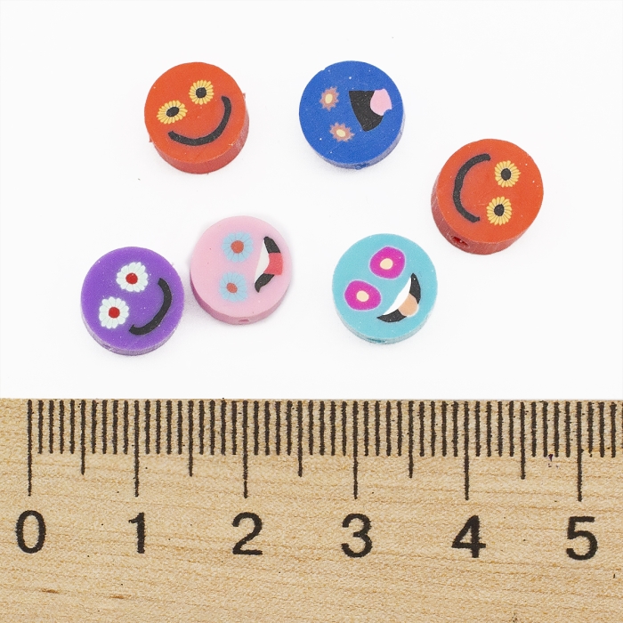 Бусины из Полимерной Глины, Ручная Работа, Круглые Плоские, Смайлы, Цвет: Микс, Размер: 9-10х4-5мм, Отверстие 1.6мм, (УТ100028528) - ᐈ заказывайте в Москве оптом и в розницу ✅Скидки ✅Акции ✅Распродажи ᐈ доставка по всей России ᐈ Интернет-магазин Мир Бусин