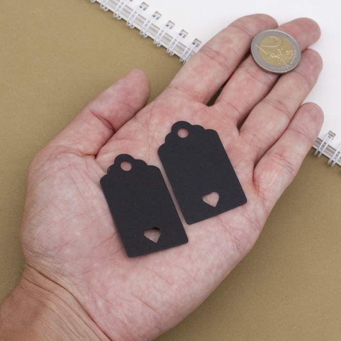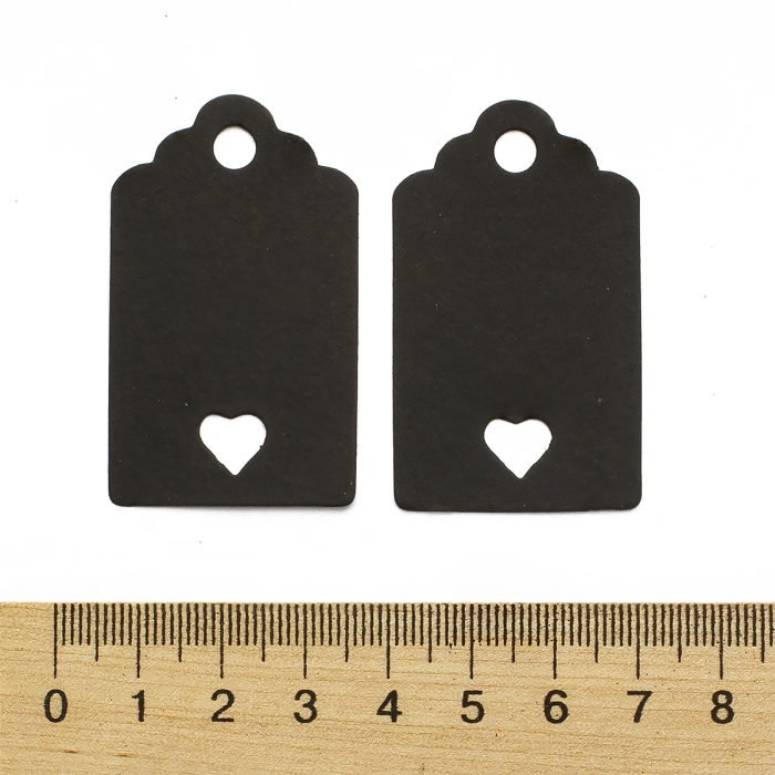 Бирки Подарочные Черные, Прямоугольные с сердечком.