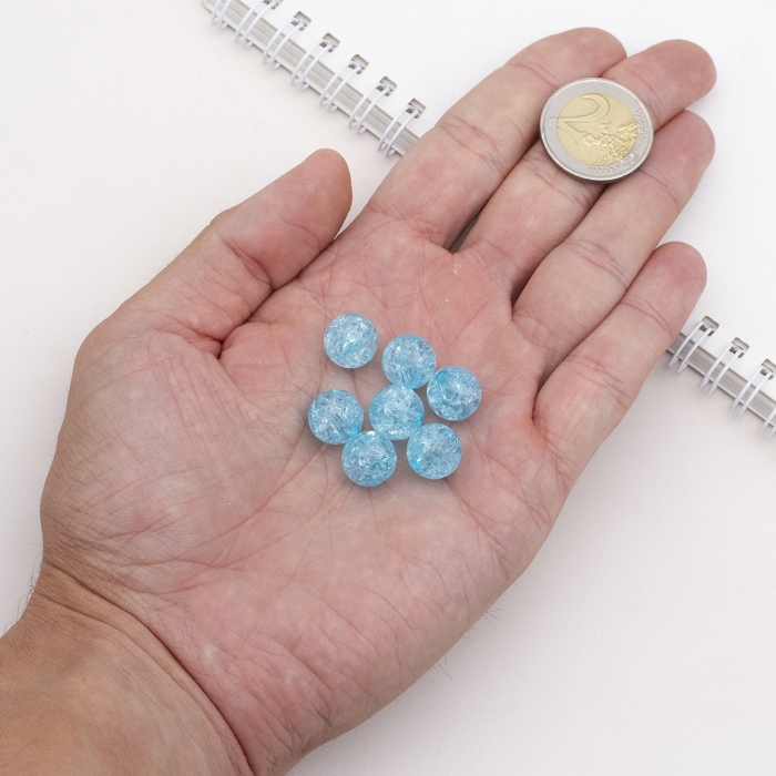 Бусины Акрил "Битое Стекло", Имитация, Круглые, Цвет: Светло-голубой, Диаметр: 12мм, Отверстие 2мм, около 25шт/25г, (УТ100029488)