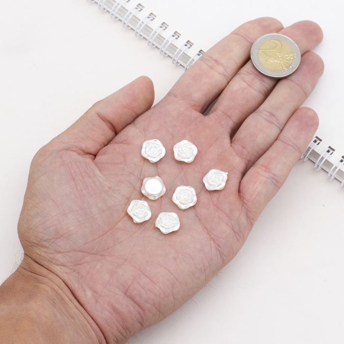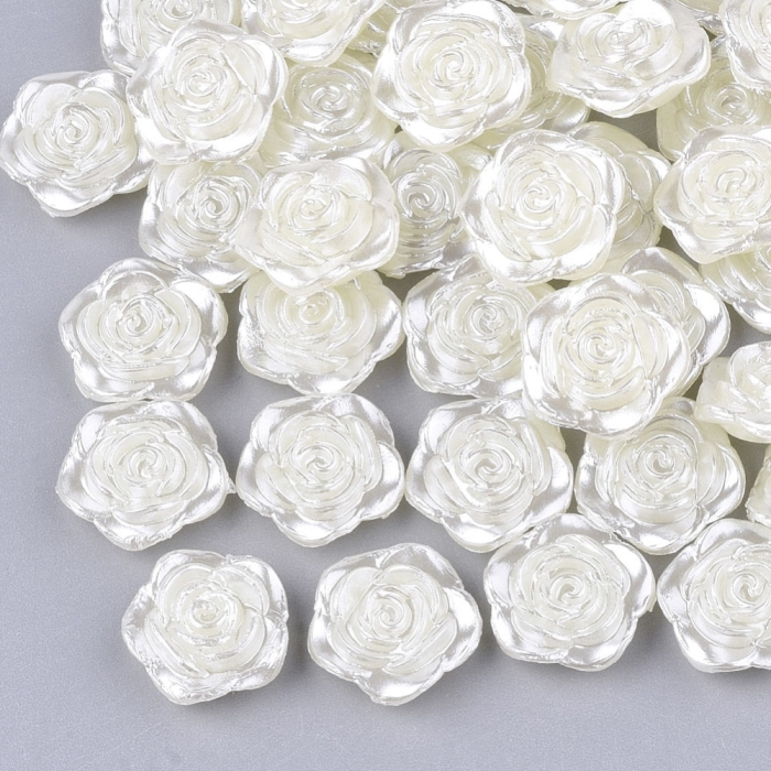 Кабошоны Жемчуг ABS Пластик, Цветок, Цвет: Бежевый, Размер: 12х11.5х4мм, около 90шт/25г, (УТ100029543)