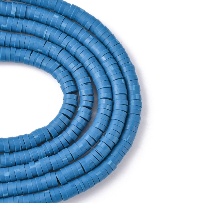 Бусины Экологичные из Полимерной Глины, Ручная Работа, Бусины Heishi, Круглые Плоские, Цвет: Стальной синий.