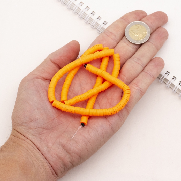 Бусины Экологичные из Полимерной Глины, Ручная Работа, Круглые Плоские, Оранжево-красный, 6х1мм, Отверстие 2мм, Около 345шт/40см/нить (УТ100029969) - ᐈ заказывайте в Москве оптом и в розницу ✅Скидки ✅Акции ✅Распродажи ᐈ доставка по всей России ᐈ Интернет-магазин Мир Бусин