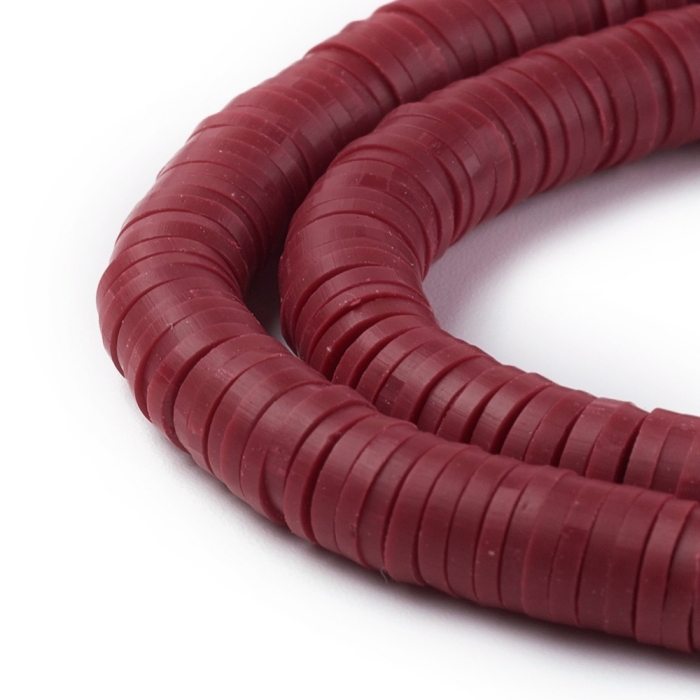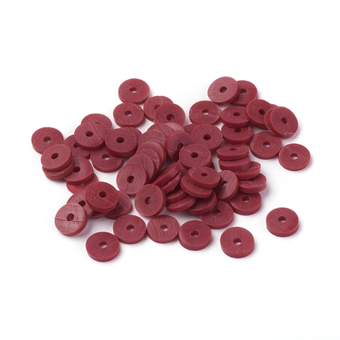 Бусины Экологичные из Полимерной Глины, Ручная Работа, Бусины Heishi, Круглые Плоские, Цвет: Темно-красный.