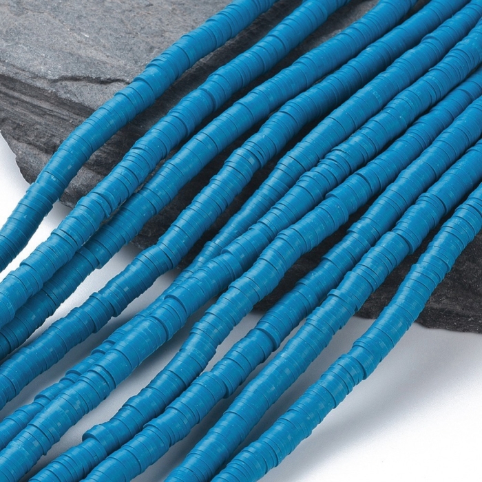 Бусины Экологичные из Полимерной Глины, Ручная Работа, Бусины Heishi, Круглые Плоские, Цвет: Стальной синий.