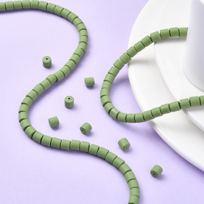Бусины из Полимерной Глины, Ручная Работа, Колонка, Цвет: Оливковый, Размер: 6.5х6мм, Отв-тие 1.2мм, Около 58шт/38см/нить, (УТ100030042) - ᐈ заказывайте в Москве оптом и в розницу ✅Скидки ✅Акции ✅Распродажи ᐈ доставка по всей России ᐈ Интернет-магазин Мир Бусин