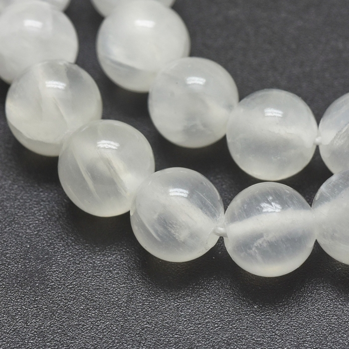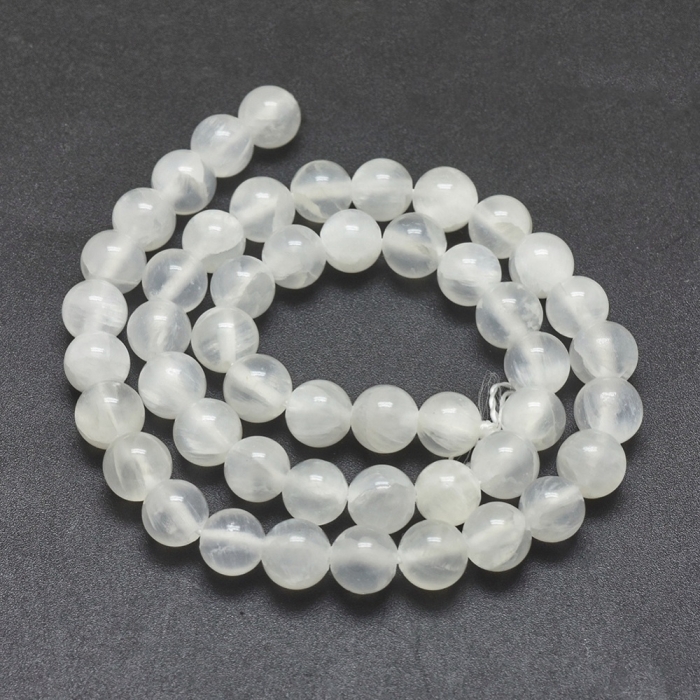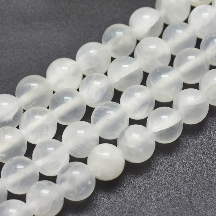 Бусины из Натурального Селенита Круглые, Неокрашенные, на Нитях