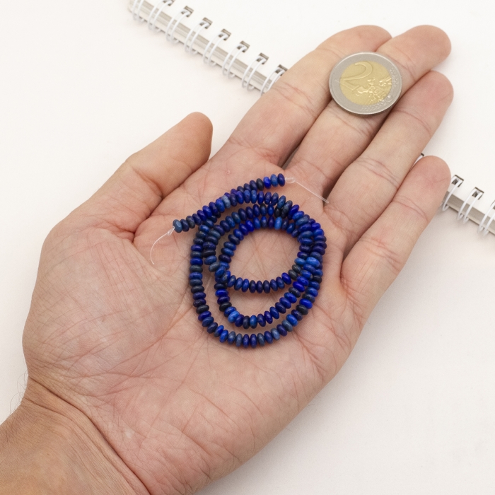 Бусины Натуральный Лазурит, На нитях, Рондель, Размер: 4.5-5х2-2.5мм, Отв. 0.8мм, около 160шт/36.5см/нить, (УТ100030203) - ᐈ заказывайте в Москве оптом и в розницу ✅Скидки ✅Акции ✅Распродажи ᐈ доставка по всей России ᐈ Интернет-магазин Мир Бусин