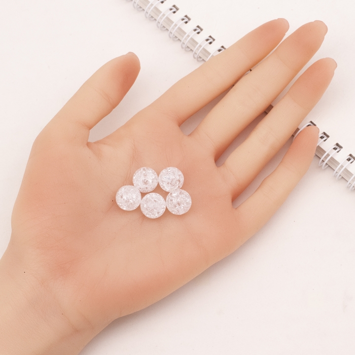 Круглые акриловые бусины с эффектом кракле (трещин внутри), что создает оригинальную игру света и делает украшения более объемными и выразительными. Они легки, крепки и удобны в использовании, прекрасно сочетаются с другими материалами.