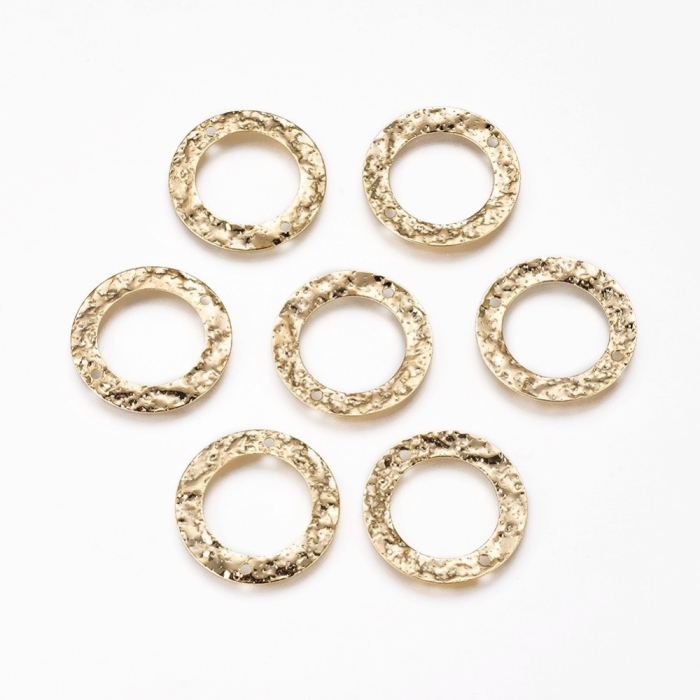 Коннектор из латуни в форме кольца - это декоративный элемент, выполненный из латуни, который служит для соединения или украшения различных частей в ювелирных изделиях, браслетах, ожерельях и других рукодельных проектах. Латунные коннекторы обычно предоставляют прочное и стильное соединение, а материал придает изделиям блеск и элегантность. Они могут использоваться для создания уникальных и оригинальных украшений, придавая им теплоту и характер металла.