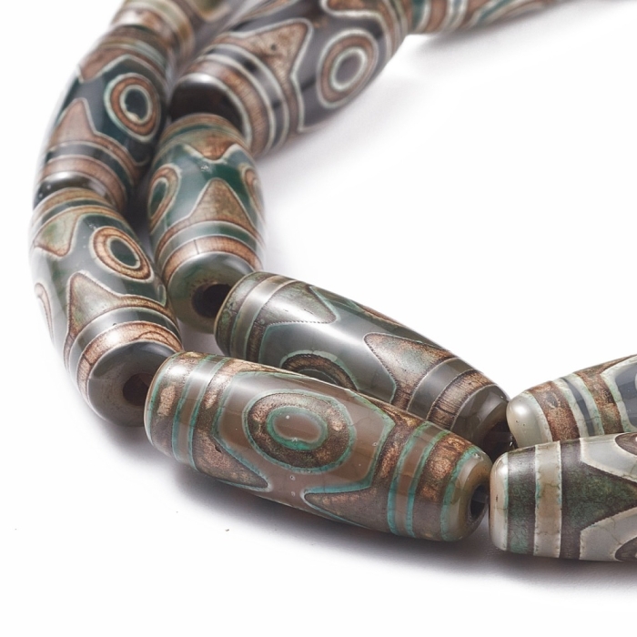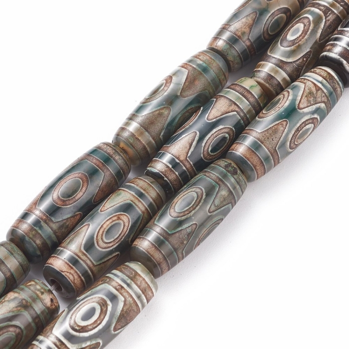 Бусины Дзи из Натурального Тибетского Агата, 3 Глаза, Рис, Термоокрашенные.