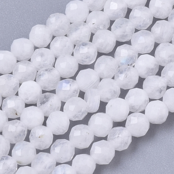Бусины Натуральный Радужный Лунный Камень Круглые Граненые, Неокрашенные, на Нитях